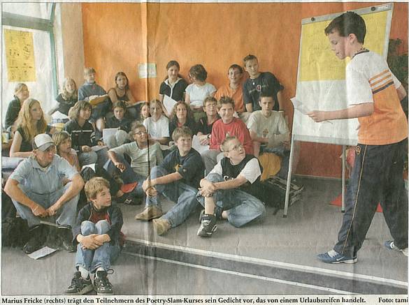 Über einen anderen Schulslam schreibt das Darmstädter Echo: "Mit Feuereifer gingen die Jungpoeten ans Werk